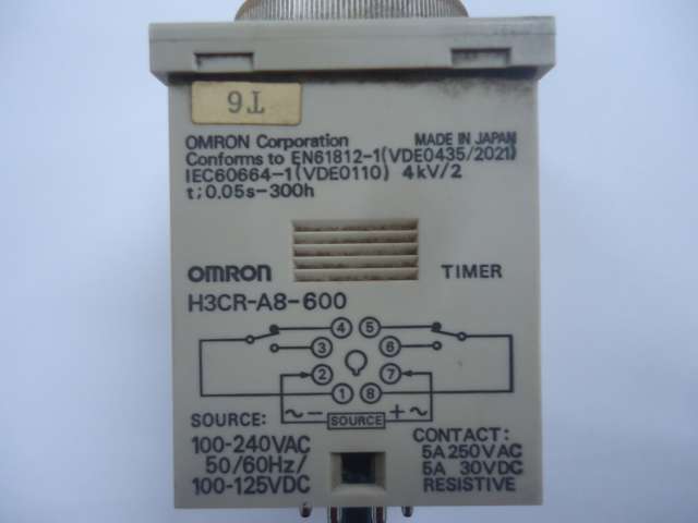 OMRON CORPORATION OMRON H3CR-A8-600CONFORMS TO EN61812-1(VDE0435/2021)IEC60664-1(VDE0110) 4KV/2t;0.05s-300hSource: Contact100-240VAC 5A250VAC50/60Hz/100-125DC 5A30VDC Resistive
