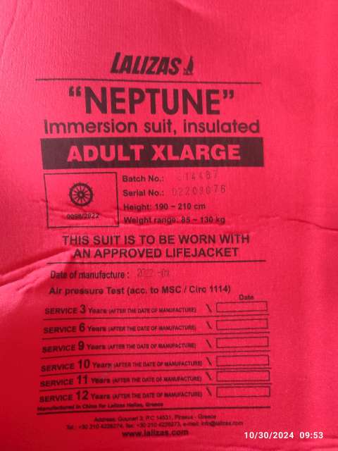 REQUIRED TO REPLACE 4 DAMAGED IMMERSION SUITS