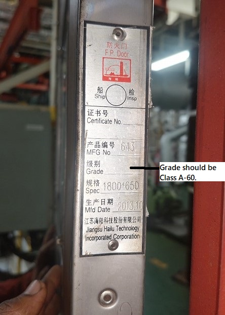 Fire Prevention door(Self closing) with viewing window, for ECR. 3 Hinges, Width- 685mm(including steel covering), Length- 1830mm(including steel covering)JIANGSU HAILU TECHNOLOGY INCORPORATED CORPORATION.