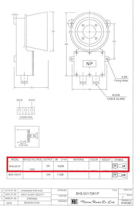 ReSCUE BOAT SPEAKER MODEL NO BHS-5A1/F 5W