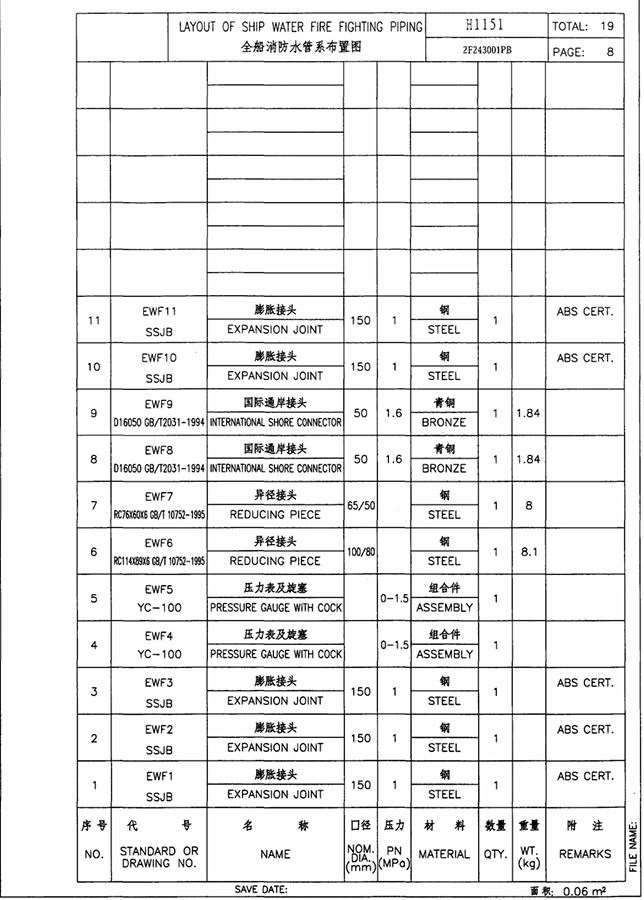 Fire line expansion joint on deck, pipe normal dia is 150, full complete set.