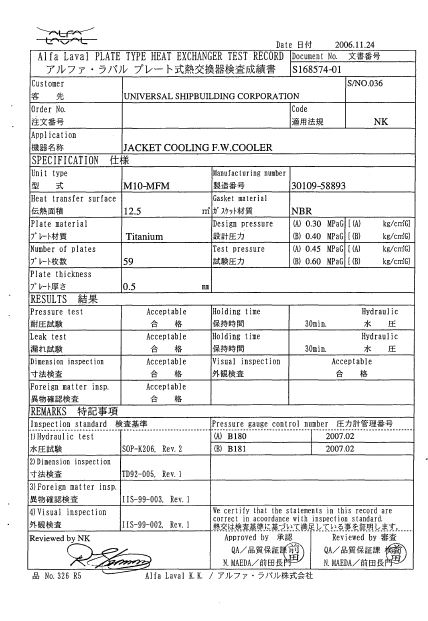Appropriate sample class and makers test certificates to be provided for Mooring Ropes, Mooring Wires, Wire Slings, and other load bearing item's/equipment's.