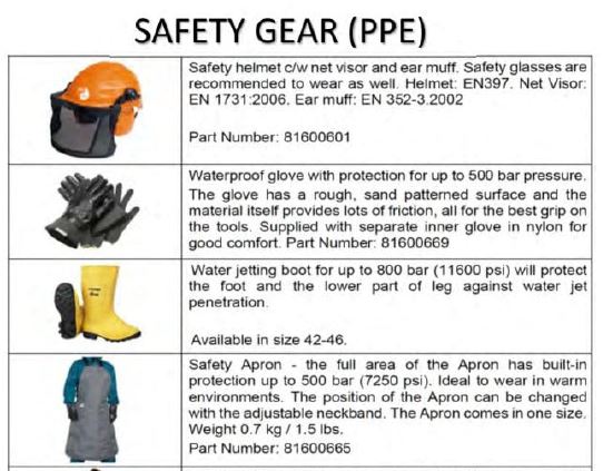 Hydroblaster PPE COMPLETE SET /Model no CE20 -500