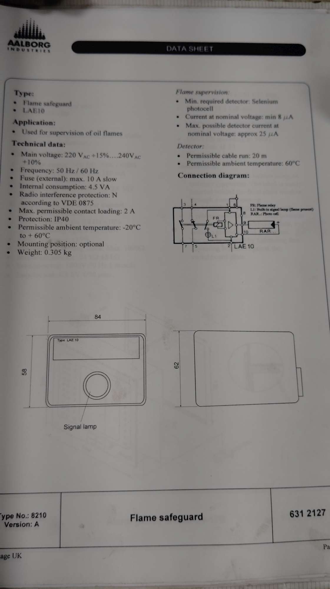 Type-Flame Safeguard LAE10Voltage-220Vac 50/ 60 HzIP-40