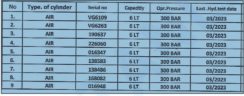 Required annual inspection of Med Oxygen Cylinders: 40 ltrs 1 number + 3 ltrs 4 numbers