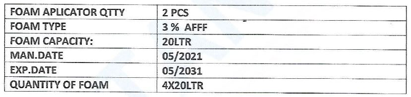 Quality test of foam component for the foam applicators in engine room along with annual inspection of complete foam applicator sets