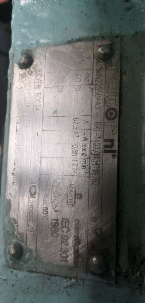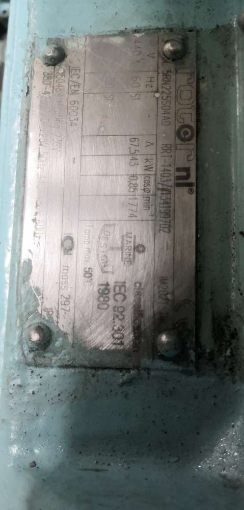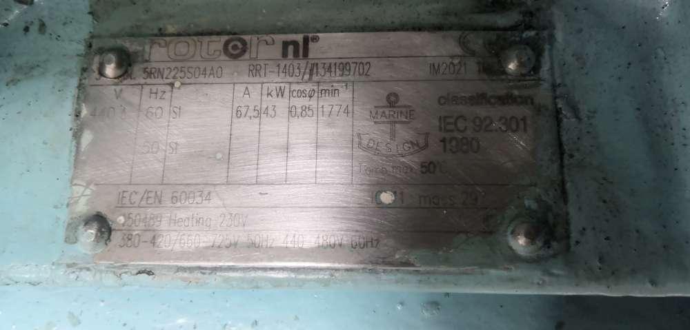MOTOR MAKER : ROTOR nLSR NO. 5RN225S04A0440V, 60Hz, 67.5 A, 43 KW, PF= 0.85, Rev=1774