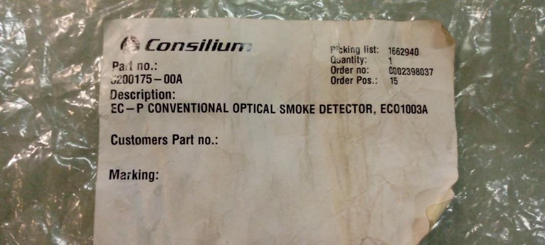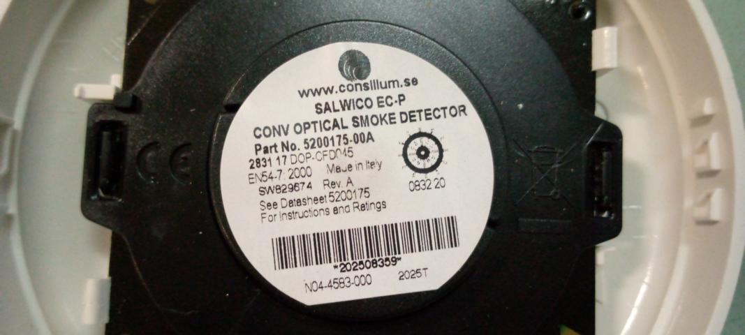 NAME: Conventional optical smoke detector TYPE: EC-P SALWICO MAKER: CONSILIUM Part No. 5200175-00A