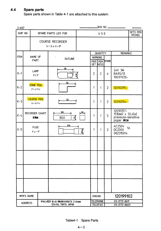 COURSE RECORDER MAKER: TOKYO KEIKI, MODEL: CR-4, SERIAL NO.: 12795