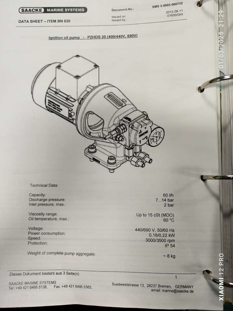 Ignition oil pump- PZHDS 30(400/440V,690V)