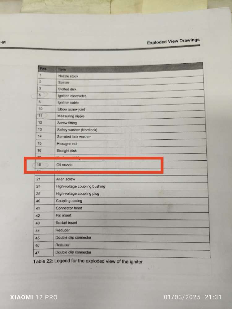 CRITICAL SPARE PARTS FOR BOILER- URGENTLY REQUIREDBURNER TYPE - SKVJ-M 14